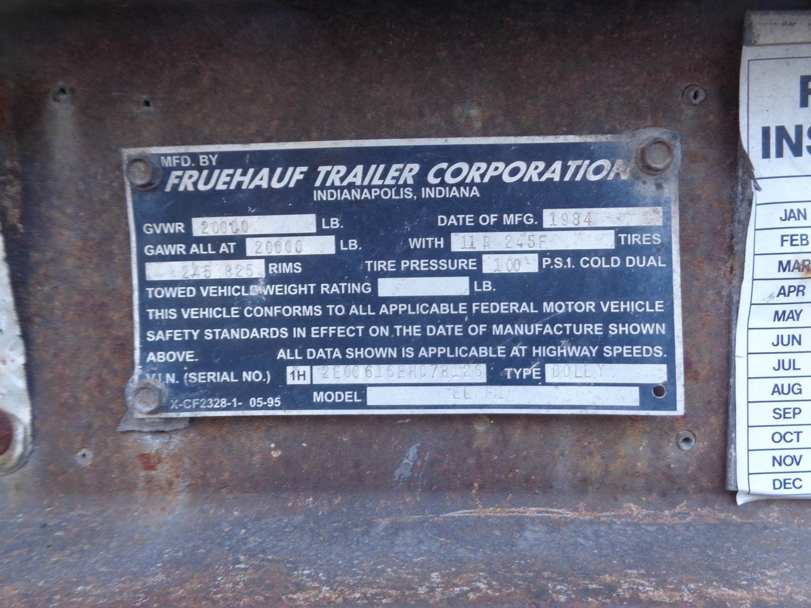 1984 Fruehauf EL FI Dolly Trailer