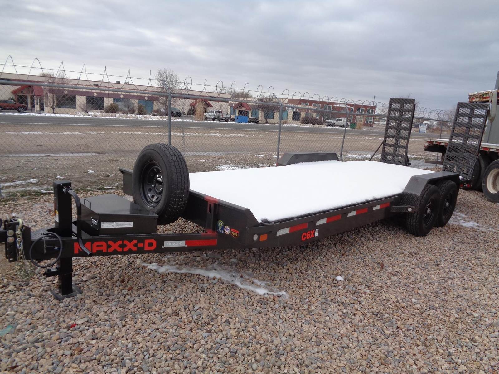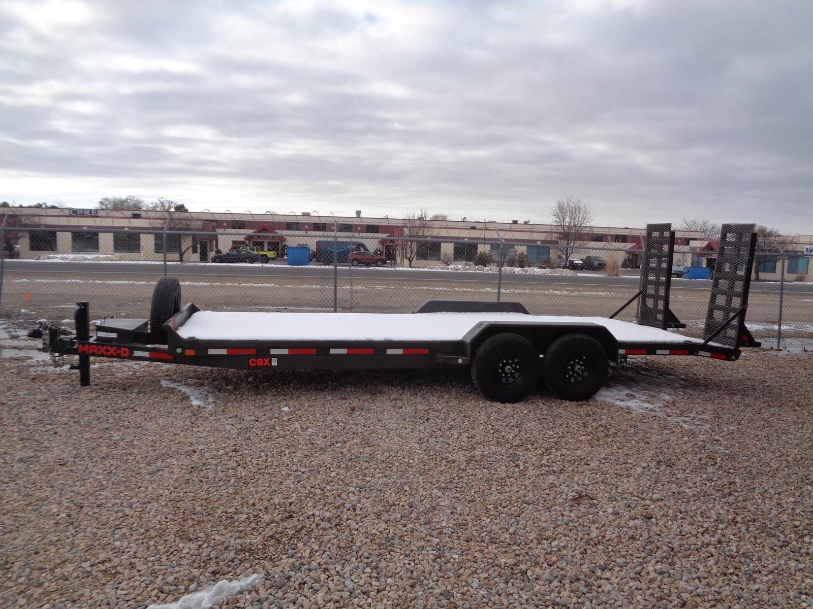 2024 MAXX D, 22' FLATBED CAR HAULER, STEEL WHEELS, WOOD FLO0R, FRONT CARGO BOX, REAR FOLD DOWN RAMPS