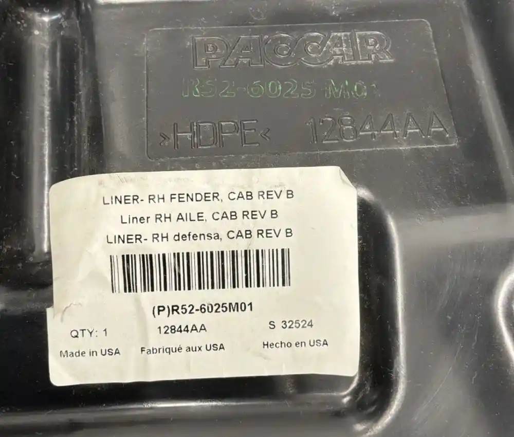 Paccar/Kenworth Inner Fender Liner (RH) *Fits 2013-2021 Kenworth T680 Part# R52-6025M01